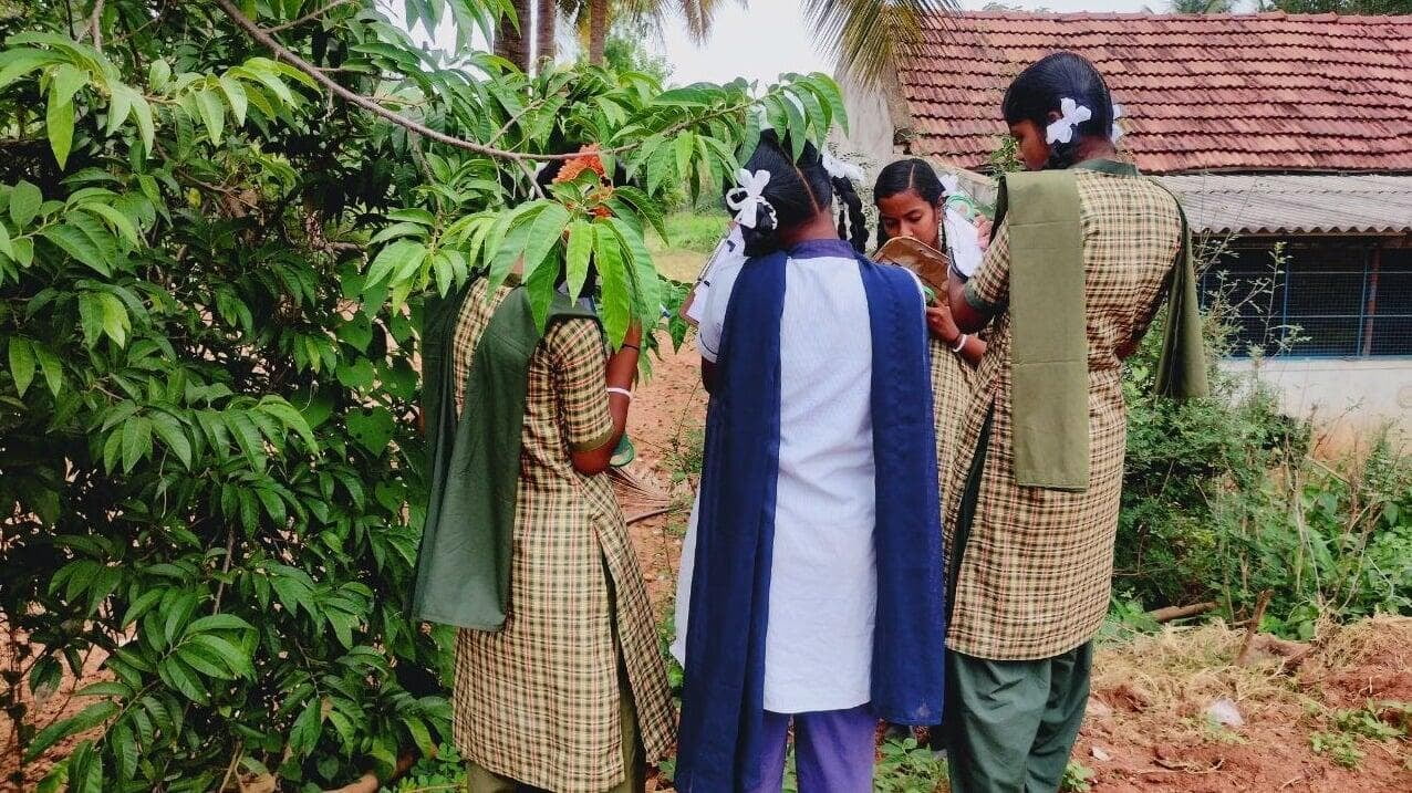 Make the children into groups, provide them a tray and a pipe, ask them to make a hole which fits the pipe and to grow ragi in the first tray ,horse gram in the second tray, black eyed beans(halasandi kalu) in third tray and mixed grains in fourth tray. Give them a period of a week to grow the plants.
